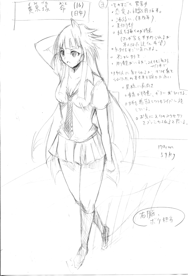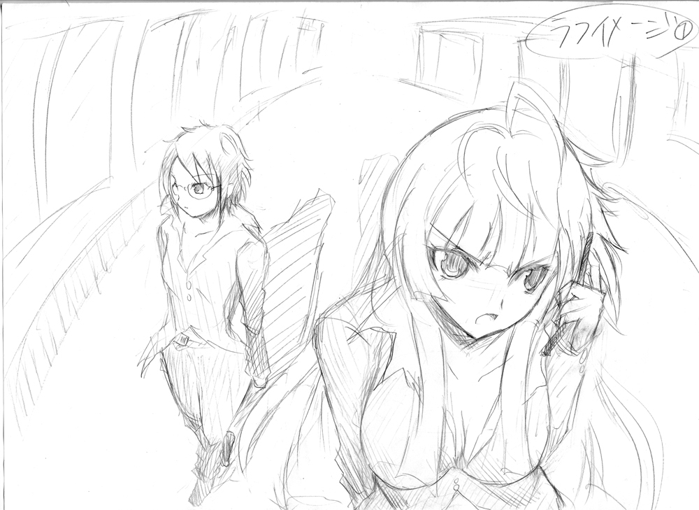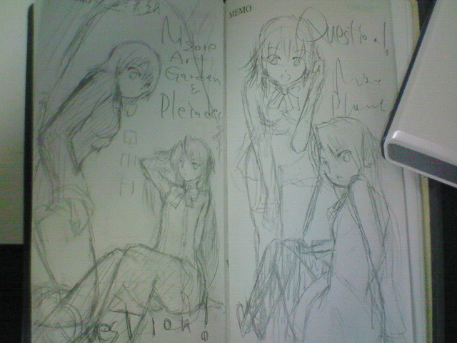 PR 時間がないですねすいません、一ヵ月半も更新せずに 最近は配信なぞしております。 もう冬コミの表紙が難航しててそれを描きながらだべって配信してます。 画像は昨日配信中に描いたやつ。 こちらで配信してます http://www.stickam.jp/profile/yukimizore 大体夜配信してます。週2~3くらいで 夏込み終わってからイロイロありました。 箇条書きで。 ・8月末、研究室の合宿参加後、インフルエンザにかかる。 ・9月上旬、大学院試験の勉強→なんとか合格 ・9月下旬冬コミ表紙に取り掛かりながら配信を始める。 フレックスコミックスの編集者さんをお知り合いの漫画家さんにに紹介してもらって オリジナルマンガのプロットを練り始める ・10月上旬、緋色雪さんのところでうみねこのなく頃にマンガのアシスタント、初めて泊り込みする。(台風もあったし) ・10月中旬、大学の卒業研究の中間発表 そして今日、編集者さんと会ってオリジナルマンガの話をしてきました。 といよりもマンガのつくりをイロイロ教えてもらいました。 今月末にもう一本のプロットと今回持ち込んだプロットのさらに掘り下げた部分を 編集者に提出することになりました。 近況としてはそんなかんじです。 今後の予定 ・冬コミ表紙を終わらせて頭にあるネームを描きあげる。 ・今月末までに新しいプロットと今のプロットの掘り下げ ・卒研の中間発表第二回の準備 ・月2~4バイトでケータイ代と印刷費の足しにする ・早いとこ卒研を終わらせる ・緋色さんのアシスタントを11月に入る ってかんじです。 予想はしてたけど異常なほどに忙しい。 でも楽しい。 Mかもしれない。 不安だらけだけど 期待もあり。 とりあえず表紙出来たらスグこっちでアップするんで見守ってやってください。 来週中には完成させます。 あさってからコミケとなもう金曜からコミケですか・・・ 見たら分かると思いますが脱稿しました! 7月30日に。 怒涛の7月終わって、そのまま一夜漬けで英語の輪読終わらせて、 課題も付け焼刃で作って、バイトを合間にして。 今日もバイトだった。 テストあったら終わってただろうな、と思った8月6日は、 久々になんも無い日でした。 ダーツしかしてません。レーティングあがんねー。 奨学金の追加募集枠に入れたみたいで もしかしたら奨学金取れるかもしれないでございます。 4~10月分が一度に入るので 50000×7=350000円 が振り込まれるわけです。。。。 今までそんな金持ったことねえwww とりあえず貯金はもちろんですが(結局返すので将来) デスクトップPCをマジで買いたい。 いやもう3年ほど今のノートPCでフォトショやらコミスタやらSAIを1.5GBというスペックでうごかしてますが 怖い。 いつとまるかわからんw 終盤レイヤーが増えてくると確実に重い(笑) スティッカムで配信してたらもっと重いw 3~4GBでデスクトップでやりたい。 そしてituneや資料用ネットはノートPCに任せて(あわよくばサブディスプレイ扱い) 絵の作業のみのPCとしてデスクトップPCが欲しい。 いくらあればいいかな。。。そういう知識がマッタクないぜ。 あと先生のところで使った液晶タブレットが忘れられん。欲しい。 欲しいけど。。。高いな。100000~250000はするもんな。。。 もうタブレットもですね、高2の時に買ったので、6年経つのか…? Intuos2 620 いつ壊れるんだろう。 七海綾音さんにIntuos3を安値で売ってもらえるかもしれないんで それがあれば何とかなるかな・・・? あと親への浪人時代からの借金が100000はあるなww あとすばるさんへの印刷費60000 とりあえず借金を返して 余った金でどれか買うかな。デスクトップで4GBでフォトショやらがさくさく動くのはいくらあればいいですか?教えて詳しい人(゚Д゚) なるべく安くしたい! そうそう、写真は先生が 「電車の中で10年近くラフを描き続けてる」 と言っていてその枚数はゆうに1000枚~に達している緋色先生ですが 確かに電車の時間は行き返りで絵を描けてしまうほどの時間(片道30分)があるので 自分もやってみました。の図です。 電車の中で手帳に描いてみましたがめっちゃ集中できました(笑) まあバイト先の休憩室でも手を加えましたが 冬コミ表紙ラフ案。 夏のまでに清書して塗りたいね。 やっぱ電車って特にすることないから むしろ絵を描くのには集中できるなあと思いました(・∀・) 別に周りの人は気になりません。 DSやってたり新聞読んでたりDQ9やってたり、小説読んでたり仕事のPC開いてたり 企画書を書き込んでたり音楽聴いてたり・・・ 電車の中は絵を描くのと同等なくらい自分の世界に入る人居ますね。 これ結構いいなあ。「時間も限られてるから、早くなるよ」 と先生言ってたけど、 確かに行き先の池袋や後楽園に近づくにつれてめちゃ集中するw クロッキーみたいw 夏休みは 学科のみんなで院試の勉強と 絵を描くことと バイトすること 研究室の合宿すること それだけしてればあっという間に過ぎますね、多分。 商業の仕事なんか来ないかなあと思う今日この頃。 強くなりたい…!(ガチ