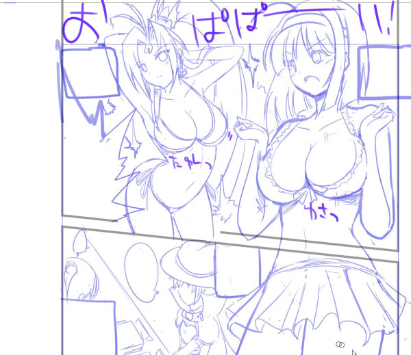 申し訳ありません。 そんなこんなで社会人になっていました。4月から。 念願というか憧れでもあった大手ゲーム会社(正確に言うとちょっと違うけどアミューズメントに近い) の絵を描いたり企画する仕事に就くことができました。 内定貰ったのは去年ですね。 正確にはゲームソフトもやってたけど今アニメとかゲームに関係する絵の開発してる感じです。 自分が好きな仕事です。 自分のHPを何年も前から見てる奇特方がいらっしゃれば、大学時代によく 漫画家なりたい ゲーム会社で何か描いたり考えたい アニメーターにも興味がある といった夢っぽいことを端々言ってましたが、気づいたらもう今その夢のゲーム会社で働いてました。 日々、忙しいこと、学生気分がぬけない部分を直したり、上司の方々の仕事を見て覚えたりなど、 毎日が刺激的に送れて非常に充実しております。 マジで今の仕事が忙しいけどワクワクで楽しみで、(ちょっと不安なとこもあるけど) 絵を仕事で描ける喜びを感じているので幸せです。 数年後同じ事言えてるか分かりませんけどw そんな充実しつつも忙しく仕事した生活を送ったり休日遊んでたら気づいたときにはもう夏コミの〆切が 迫ってました。わりとマジで予定経ててたのにマッタク実行出来なかった。 誘惑流されやすかった自分、サーセン・・・ ちょっとした自慢で、4年間、活動してきた中でコミケに出てオフセ新刊を出さなかったことは1度も無いんですが、 今回は多々言い訳になってしまいますが、計画性の無さで新刊出せないということをお伝えします! そして、年末の冬コミももう期間も3ヶ月も無いことから申し込みをするかかなり悩んでおります。 申し込まない確率も80%くらいあります。20%まだあるかもですけど。 というのも、友人に、「落とすくらいなら、最初から参加しないほうがモチベーションが下がらない(描き手も読み手も)」 というアドバイスを受けて、なるほど、「毎回出すことがジャスティス」では無いのだなと思ったので、今後、 「新刊が確実に出せると分かる状態」で、申し込みをしようとおもいます。 焦って、特に遅筆気味の私がクオリティ保たないで本を出したら色々切ないことに、 私も読者さんもなっちゃいますから、今までかそれ以上の質をちゃんと保って本を出したいと思ってますので、 ツイッターやこのHPをちらちらと見ていただければ、コミケ以外にもオンリーやコミ1などで新刊出すとき、イベント参加するときは告知していきますのでお暇な方はチェックして頂けると助かります。 言い訳はいっぱいありますが、平日通勤+9時間勤務(1時間休憩含み)で睡眠も確保しようとなると なかなか原稿できませんw んでもってたまったストレスを休日遊んだり飲んで過ごしちゃうもんですから、 ホント4月から8月まで怒涛の勢いで過ぎていましたね( ^ω^)・・・ 流されてスンマセンマジデ まあ休日仕事あったりもしたんですけど。 同人活動を辞めるとかは無いんで、ご安心いただければと思います。 今までの濃い味を少し薄味にして活動していったほうが、良い味出しやすいかなという変換シフトです。 つらつらと言い訳を述べましたが、コミケ当日は、平日なので本人いけません!www ただし、前回の合同相手の彩葉さん(Aqr9)の新刊2種や (彩葉さんのスロ本新刊はココをチェック!→ http://pontium.dip.jp/~unyun/) 売り子は居るので 当日1日目 W-45a 「Mizore Art garden」 まで来て頂ければ彩葉さんの素敵な本、そしておそらく会場限定の 「お詫びの霙新刊落としたおしりペンペンペーパー」をお配りしようかと思います。 もちろん無料ですよペーパーは。 と同時に5月に描いたマジハロのコピー本が少し余ってるのでそれも持ってくかも。ペラいですけど。 既刊はあえて、殆ど持ってかないと思います。残部が20部も残ってないやつもあるので、去年出した 「ROMANCE」がまだ結構あるのでそれを少部数売り子に持たせようと思います。 そんなこんなで今回新刊出せず申し訳ありませんでした。 直近で何か描くものは、秋にやるスロ系オンリーのカタログの表紙とかですんで、その辺もチェックして頂けると嬉しいです。 冬・・・は厳しいかもですね、まだ配属決まったばっかりでどれくらい忙しくなるか分からないんで。 2013春~夏あたりには確実に1冊ちゃんとしたの作りたいです。 それでは続きはツイッターでくだらないことつぶやいてるので見てやってください。 暑い! お仕事宣伝 &現在新刊本文制作中お仕事宣伝させていただきます! 桃色大戦ぱいろんにてキャラデザしたルル・ルージュのAnothet版イラストを描き下ろしさせて頂きました! 是非宜しくお願いします!ちなみにフクロウと一緒にいるのがウチのルルです 詳細はこちら http://www.pairon.jp/index.php 現在は冬コミ新刊にむけての本文を制作中です。 本文の下書きはこんなかんじです。 ギリギリですが頑張ります。 ジャンルはマジカルハロウィンとツインエンジェルで、お隣の彩葉さんのサークルと合
